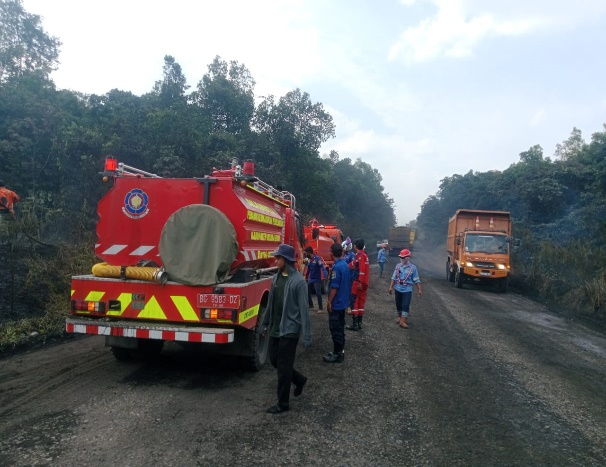 Kerja sama antara PT SLR, PT SDJ, dan Dinas Pemadam setempat sangat penting dalam upaya pemadaman api di sepanjang jalan hauling.